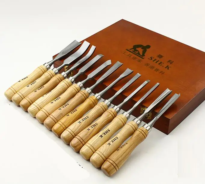 Top Quality SK5 Steel 12Pcs Soft Wood Carving Tools