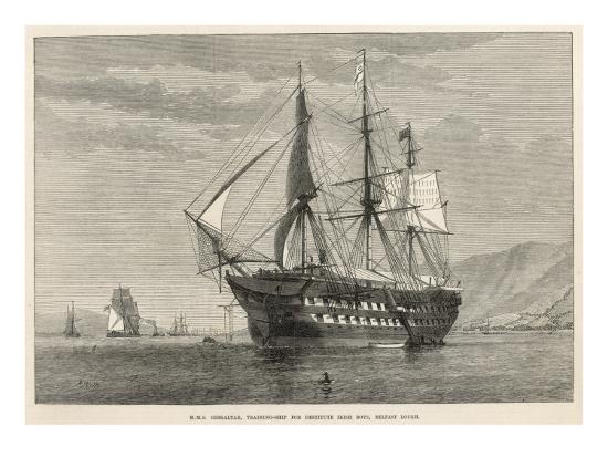 Engraving of H.M.S Gibralter a Training-Ship for